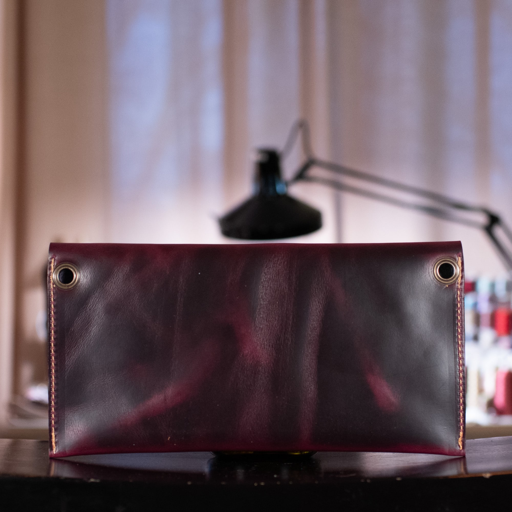 Leather Description: Medium weight and chewy with some structure, but totally smooshable, with a slightly satiny finish and amazing pull up!