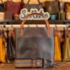 SoRetro Especial Reservo Perfect FYG Leather Crossbody Tote – Ashland Woods with Limited Calumet Sunset on Milk Chocolate Cotton Webbing – Chromalusion Hardware