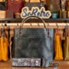 SoRetro Mini+ FYG Leather Crossbody Tote – Rock Out With Your Croc Out with Exclusivo Autumnal Blush on Dusty Rose Cotton Webbing – Silver Hardware