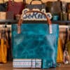 SoRetro Perfect FYG Leather Crossbody Tote – Distressed Canyon with Limited Denali Frontier on Cobalt Cotton Webbing – Bronze Hardware