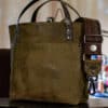 SoRetro Verdura Mini+ FYG Leather Crossbody Tote – Bosco Antico with Limited Wooly Autumn Racer on Chocolate Brown Cotton Webbing – Gunmetal Hardware