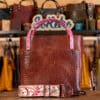 SoRetro Verdura Perfect FYG Leather Crossbody Tote – Piazza di Sambuco with Exclusivo Palm Party Pink Light on Khaki Cotton Webbing – Bronze Hardware